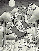 「そりゃ、きっと狐(きつね)のわるさだわ。八ッ塚で変な目にあったちゅ話は前にも聞いたことがあるぞ。年寄りのいうにゃ、そんなときゃたばこを一服すうか、火のついた線香を持っていくといいそうだ。」