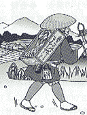 左源太は祠の勢至菩薩を厨子(ずし)におさめ、それを背負(せお)って各地を巡り、人々に仏の教えを広めました。