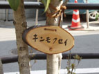 | 園内にある木の名前をみなさんに覚えていただき、公園により親しんでいただくために、愛護会のみなさんと樹名板をつくりました。輪切りにした太枝も手作りなら、文字も心温まる手書きです。 |