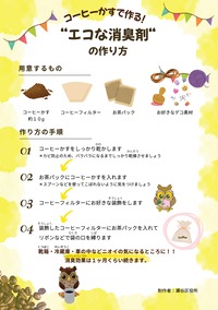 消臭剤づくりは、皆さんのご家庭でも簡単にできます。ご家庭でも普段は捨ててしまうコーヒーかすを使って、消臭剤づくりにチャレンジしてみてください!