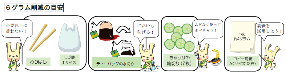 例えば、区民の皆さんが1人1日に出すごみの量を6グラム減量すると・・・
