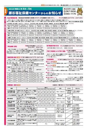 2024(令和6)年4月~9月瀬谷福祉保健センターからのお知らせ