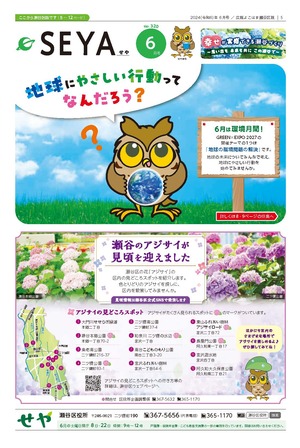 瀬谷のアジサイが見頃を迎えました/令和6年度瀬谷区区政運営方針を策定しました/せや区民DAY 横浜FC VS ロアッソ熊本/食品ロス削減・土壌混合法講習会/区役所2階区民ホールの展示・催し/食生活等改善推進委員(ヘルスメイト)養成セミナー受講者募集/介護者のつどい/介護こころ相談室/令和6年度能登半島地震 被災地支援に携わった職員からのメッセージ(最終回)