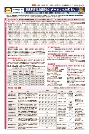 2024(令和6)年10月~2025年(令和7年)3月瀬谷福祉保健センターからのお知らせ