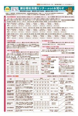 2025(令和7)年4月~9月瀬谷福祉保健センターからのお知らせ