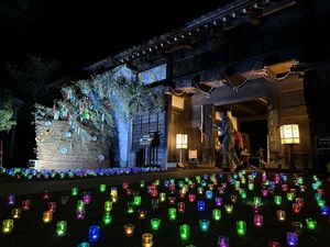 三ツ境商店街から長屋門公園まで並んだ灯篭は約900基。地域の皆様や、近隣の幼稚園、保育園、小学校、中学校の皆さんが灯篭絵を描いてくださいました。また、能登半島の復興のためご寄附いただいた方のお名前も灯篭の光に映し出されました。皆様ご自分のお名前や書かれた絵を見つけられたでしょうか。