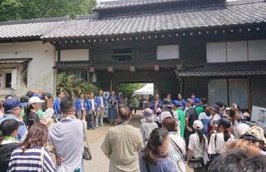 午前中、長屋門公園を会場に開催された「さとまつり」では、恒例のオープニングイベント「縄つなぎ」が行われ、シャボン玉が舞う中、大勢の方が楽しそうに縄をくぐって入場されていました。
