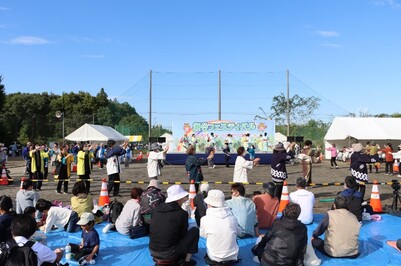 朝方まで雨が降っていて、一瞬「昨年のはらっぱ会場と同じように「どろんこ」となってしまうのでは」と心配しましたが…さすがに水はけを考えて作られているグラウンドだけあって、開会式の頃にはほとんど乾いていました。
