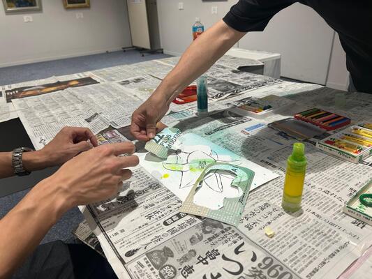 また、2027年に開催される「GREEN×EXPO 2027」および「美術展30回記念展」に向けた機運を高めるため、横浜と国際園芸博覧会にゆかりのある「えらぶゆり」をモチーフにした台紙に、色を塗ったり、シールを貼ったりする来場者参加型の作品制作が実施されています。参加者の皆様が楽しそうに創作に取り組まれている様子は、心温まる光景でした。