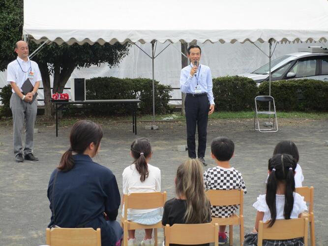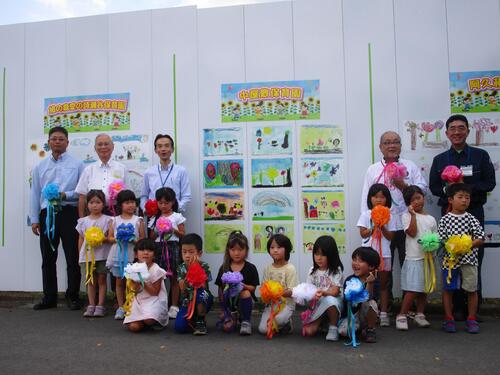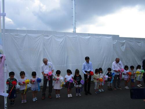 展示初日(9月10日(水曜日))にはお披露目式を行い、中屋敷保育園の園児さんが作ってくれたテープでテープカットを行うことができました。