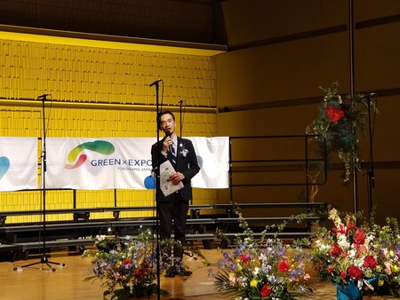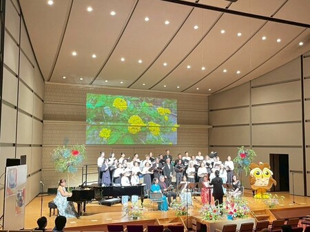 また、今回のコンサートでは、「音楽で花博を応援しよう!」というサブタイトルのもと、GREEN×EXPO 2027に向けた機運醸成につながるさまざまな取組も盛大に行っていただきました。花にまつわる数々の歌が披露されたほか、ホワイエにはフォトスポットが設置され、ステージではPR動画の放映やポスター掲示も行われるなど、来場者の皆様が楽しみながらGREEN×EXPO 2027を身近に感じられる工夫が随所に見られました。