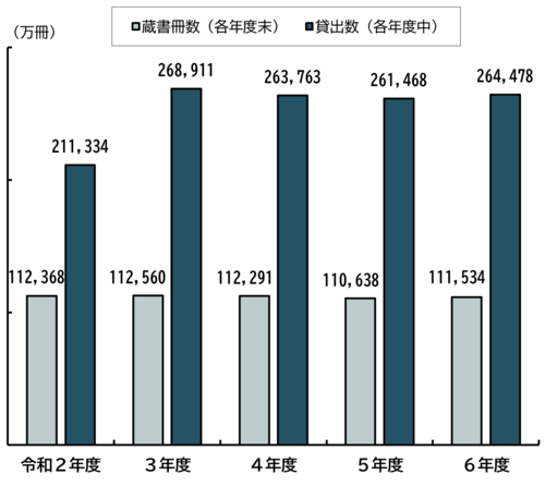 瀬谷図書館蔵書冊数・貸出冊数の推移