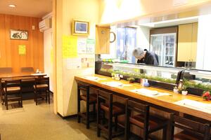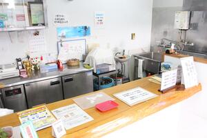 店内は明るく清潔感があり、ガラス越しに厨房の作業を見ることもできます。