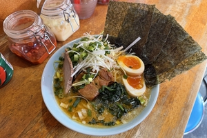 「四号家スペシャル」は味玉、チャーシュー、角煮、ほうれんそう、海苔、たっぷりのネギを盛り込んだ食べ応えのある一杯です。