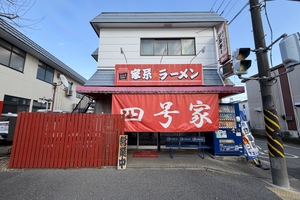 環状4号線沿いにある、大きな赤い暖簾が目印の横浜家系ラーメン店。