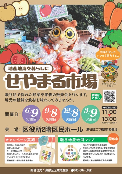 瀬谷区産の農畜産物を定期的に購入できる『せやまる市場』を開催します!当日に並ぶ旬の野菜や果物をぜひご自宅でお楽しみください!