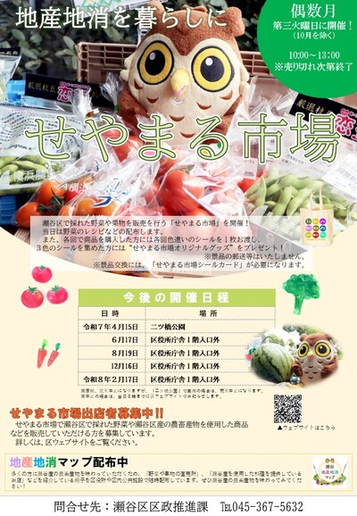 瀬谷区産の農産物や瀬谷区で採れた農畜産物を使用した商品などを出店してくださる方を募集しています。