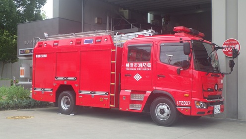 瀬谷消防署前にて車両を展示!消防車と一緒に写真を撮ろう!