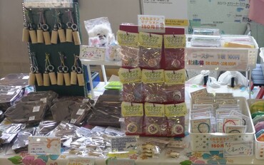 区内障害福祉事業所の皆さんによる手作り製品(雑貨や食品)を販売しました。