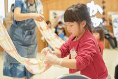 実施内容:土から生まれた天然顔料「ベンガラ」を使い、折染の手ぬぐい制作を体験いただきました。