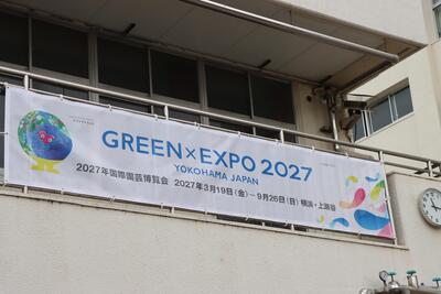 開催500日前を記念して、区内市立小・中学校全15校にGREEN×EXPO 2027横断幕を掲示!