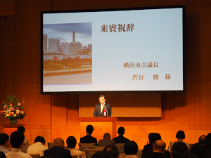 渋谷議長は祝辞を述べ、表彰された方々に深く敬意と感謝の意を表し、横浜市会としても横浜港のより一層の発展に寄与する旨を伝えました。