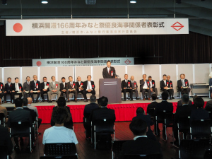 「横浜開港166周年みなと祭優良海事関係者表彰式」が大さん橋ホールで開催され、渋谷議長が出席しました。