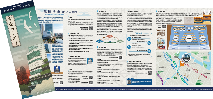 「市会のしおり」は、横浜市会について分かりやすく解説したリーフレットです。会議の流れや議員の役割をはじめ、請願・陳情の手続きなどの情報を掲載しています。