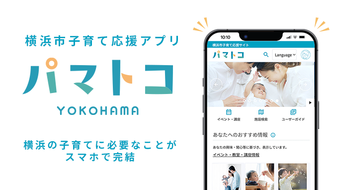 「パマトコ」は、横浜の子育てに必要なことが集約された横浜市の公式サイト・アプリです。オンライン申請から子育てに必要な情報の取得、施設検索、予防接種のスケジュール管理まで。ぜひご利用ください!