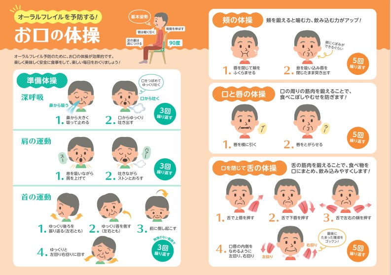 オーラルフレイルは、噛んだり、飲み込んだり、話したりするための口の機能(口腔機能)が衰えることを言います。噛む力や舌の動きの衰えから、食事がしにくくなったり、むせたり、滑舌が悪くなることで、全身の筋肉や心身の活力の衰えがすすみ、要介護状態となるリスクが高くなるため、早期の老化のサインといわれています。オーラルフレイルを、そのままにせず、早めに予防することがとても大切です。