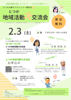 当日は、ナビゲーターに、認定NPO法人藤沢市民活動推進機構理事長の手塚明美氏と株式会社地域計画研究所代表取締役の内海宏氏をお迎えして、地域活動の事例や、継続へのヒント、活動への貴重なアドバイスなどもいただきました。