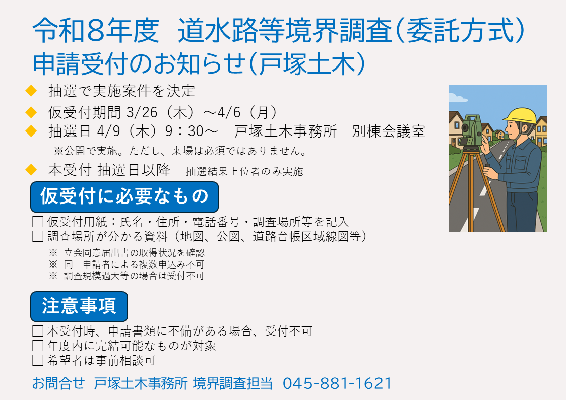 令和8年度 道水路等境界調査(委託方式)申請の受付・抽選について(戸塚土木事務所)