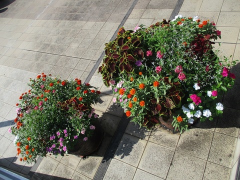 今は、大きなプランターにジニアやペンタス、コリウスなどが寄せ植えされています。