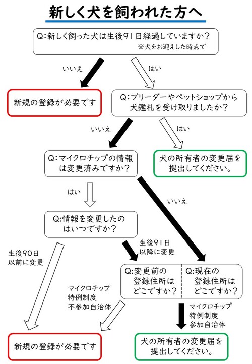 受け取っている場合は、「飼い犬の登録」ではなく「登録事項の変更」の手続きが必要です。