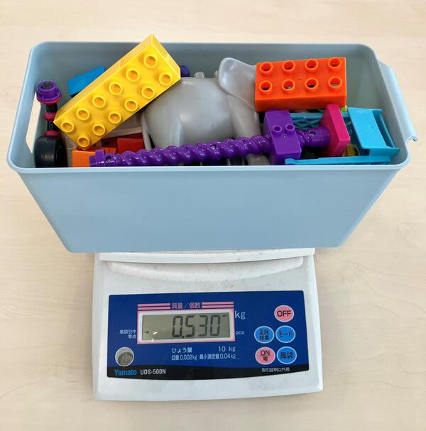 ここでは5.3kgの10分の1の重さである、530gのプラスチック製品をあてるゲームを通して楽しみながらプラスチックごみの量を体感できます♪