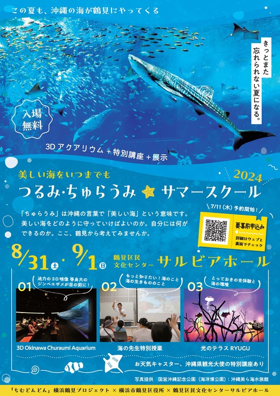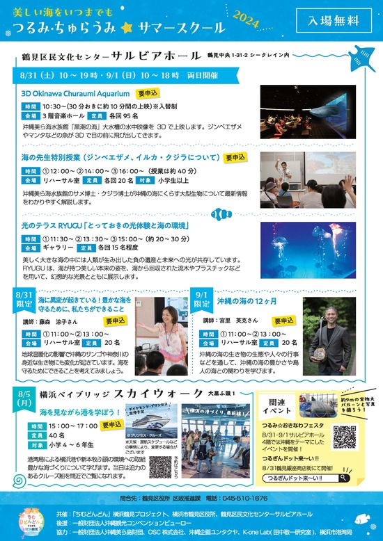 鶴見区では、横浜市内及び沖縄県内の企業等と連携して「海洋環境保護」をメインテーマとした「つるみ・ちゅらうみ サマースクール 2024」を実施します。