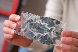 ・日本の海岸には、たくさんの海洋プラスチックごみが漂着しています。プラスチックメーカーのテクノラボはその海洋ごみを素材として活用するための独自技術を開発しました。その簡易版を体験できるワークショップです。