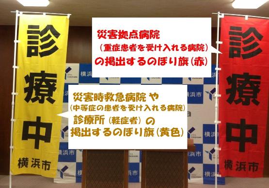 入院を要しない、軽度の負傷や疾患については、近くの診療所で被災を免れたところで診察を受けましょう。※災害時に被災を免れ、診療・開局が可能な場合は「診療中」「開局中」を表す黄色い旗を掲げます。