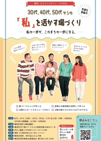 鶴見を学び、「いつまでも住み続けたいまち・鶴見」をつくるための体験型講座で、今年のテーマは、”私”を活かす「場づくり」です。