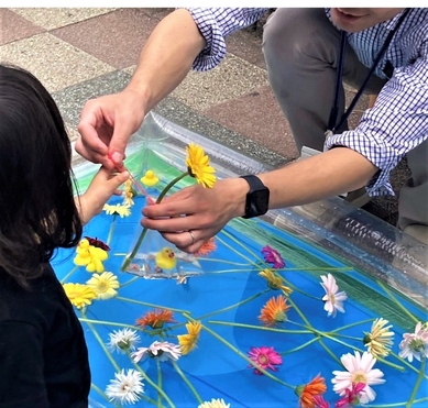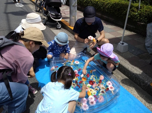 水に浮かんだ規格外のお花をヨーヨー釣りのようにゲットしよう!すくったお花は持ち帰れます。(数量限定、1人1本まで)