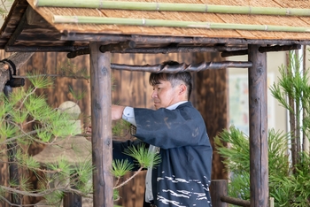 この作品は、自然の素材に加え、倒壊した灯籠などの廃物(使い古しの素材)を積極的に活用しており、この「廃物利用」の考えは、千利休の時代から受け継がれているもので、現在の3R(リデュース・リユース・リサイクル)の取組にもつながるものです。その他、EXPOの紹介や鶴見図書館の関連書籍展示、脱炭素に関するパネル展示なども行いますので、ぜひ足をお運びください。