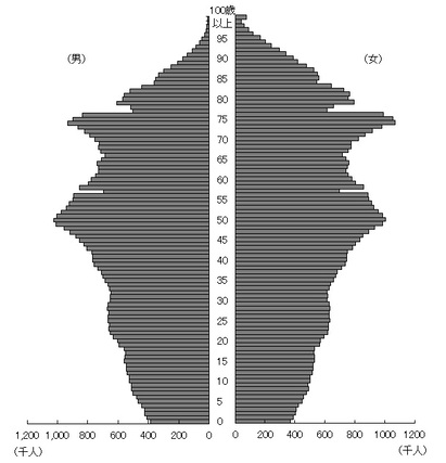 資料:横浜の人口 年齢(各歳・5歳階級)・男女別人口 総務省統計局 年齢(各歳)、男女別人口及び人口性比ー総人口、日本人人口
