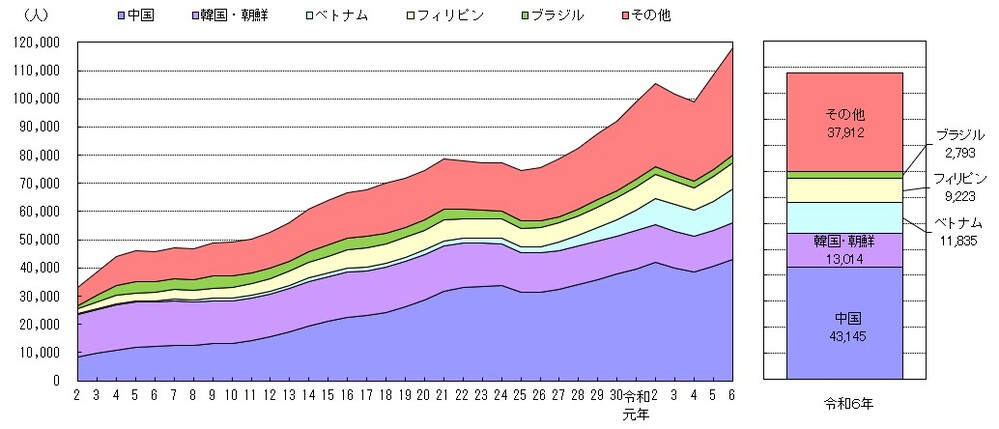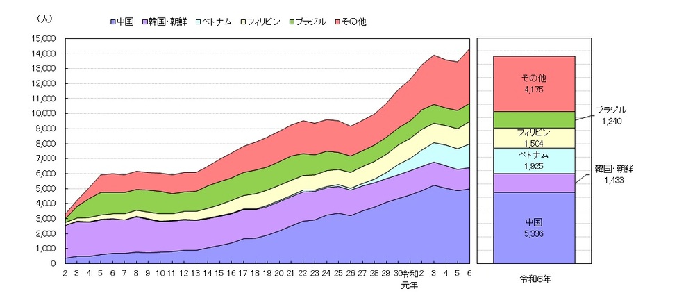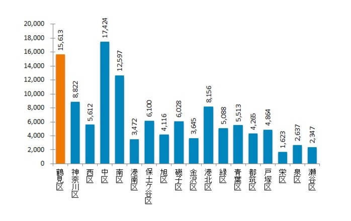 令和6年3月31日現在の鶴見区の外国人住15,613人(前年より1,485人増加)です。これは中区に続いて市内2番目の多さとなっています。