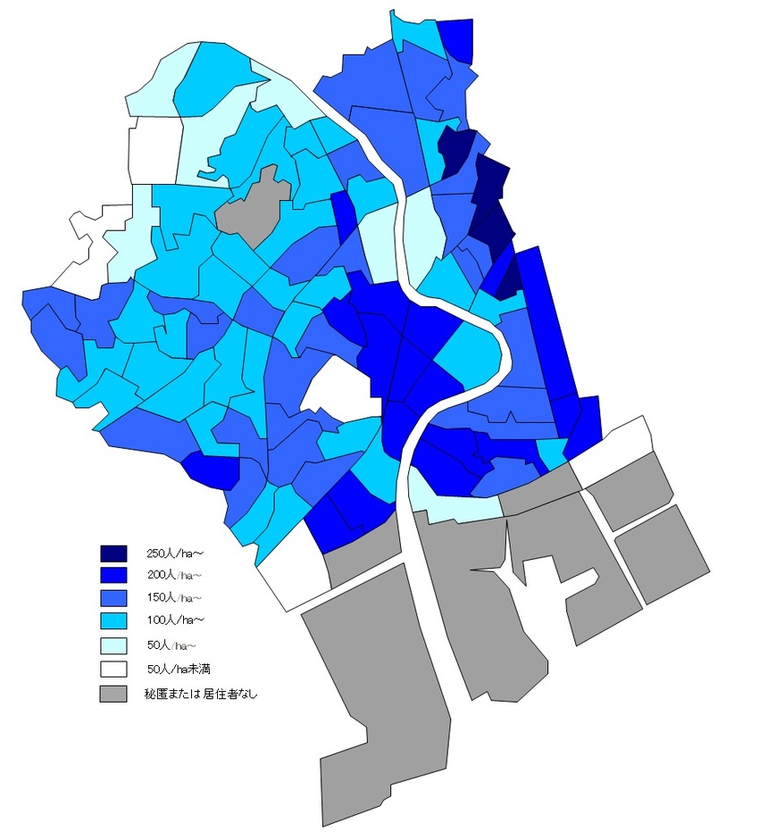 鶴見区内で人口密度の高い町は、尻手一丁目、尻手三丁目、市場富士見町、市場上町、本町通などです。また、鶴見駅周辺と、川崎市との市境の人口密度が高い傾向にあります。