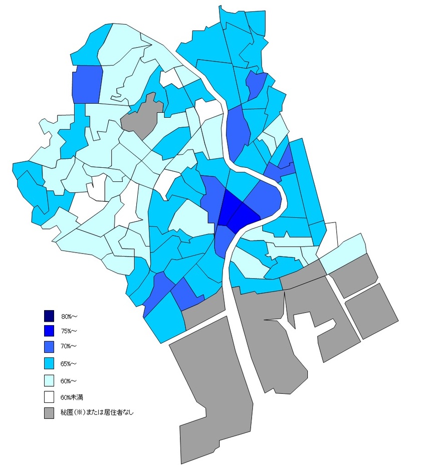 | 港北区 | 44.31 | 2位 | 金沢区 | 49.77 |