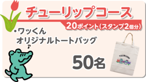 チューリップコースの賞品に応募するには20ポイント必要です。(スタンプ2個分)