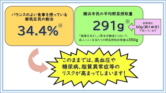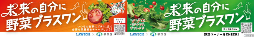 都筑区内のローソンの生鮮品等の売場やイートインコーナーにて、野菜の摂取を呼び掛けるPOPおよびポスターを掲示します。