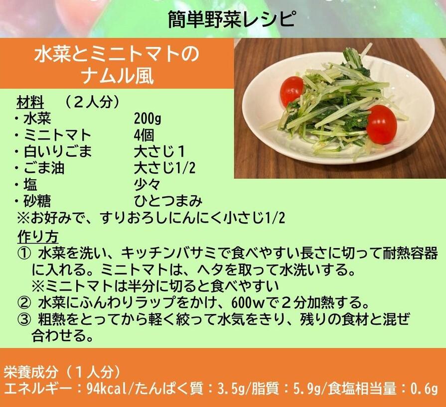 三井ショッピングパーク ららぽーと横浜、ノースポート・モール、 港北 TOKYU S.C.のフードコート又はテナント店舗等にて、野菜の摂取を呼び掛けるPOPを掲示します。また、館内デジタルサイネージにおいて、野菜プラス1品を啓発する15秒のアニメーション動画を放映します。