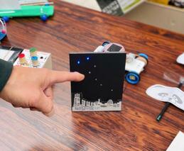 世話人の石橋義夫さんは北斗七星のパネルを手に取って、私に星を光らせてみせてくれた。