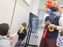 この日も親子連れに、ウサギやマシンガンのバルーンアートを作ってはプレゼント。